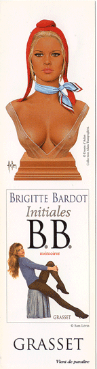 Papier, 20,8 x 5,5cm, 1995. Brigitte Bardot als das französische Nationalsymbol “Marianne” wirbt für ihre Memoiren.